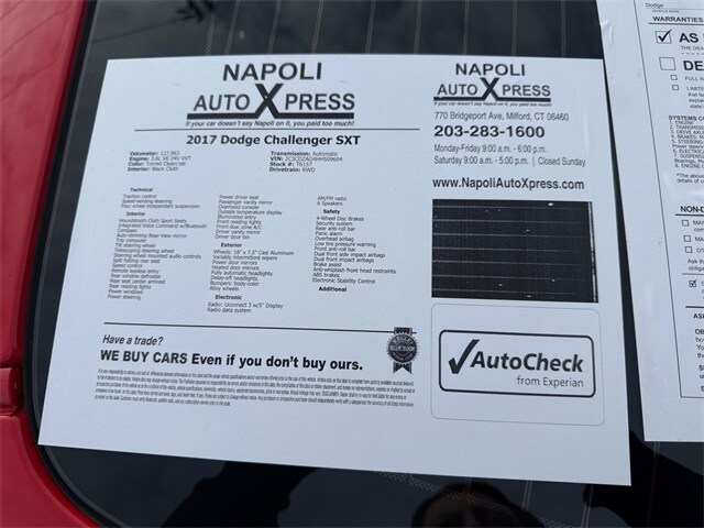 Recent Arrival! 19/30 City/Highway MPG Torred Clearcoat 2017 Dodge Challenger Automatic 3.6L V6 24V VVT RWD